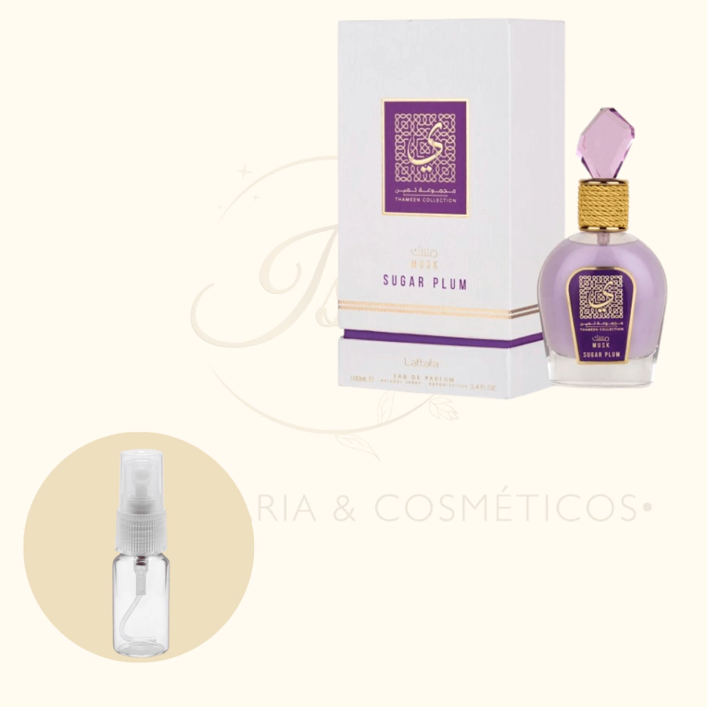 Musk Sugar Plum de Lattafa Perfumes é um perfume Feminino. Musk Sugar Plum foi lançado durante a década de 2020. As notas de topo são Ameixa e Jasmim; as notas de coração são Notas Florais e Notas Frutadas; as notas de fundo são Almíscar e Âmbar.